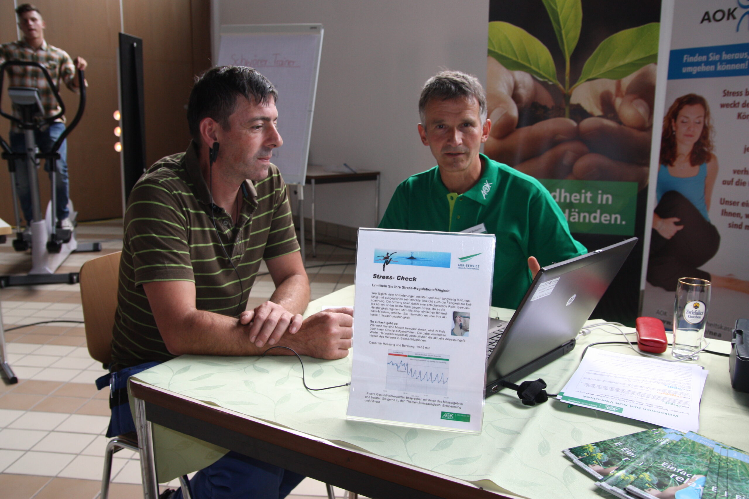 Die AOK war mit einer Körperfettmessung, einem Stresspiloten sowie der Betreuung unseres ProSpina Trainingsgerätes zugegen. Bei den aufgestellten SchwörerTrainer konnten Mitarbeiter trainieren und sich bei 10min. Teilnahme für die Auslosung eines T-Shirts qualifizieren.