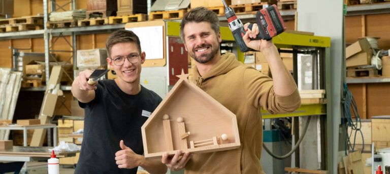 Promipaar und glückliche SchwörerHaus Baufamilie Thore und Jana Schölermann begeistern in Oberstetten fürs Handwerk. Am Samstag, 12. November 2022 besuchten die