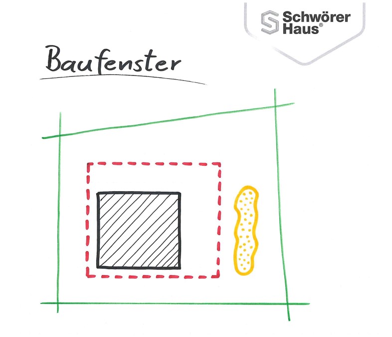 Das Baufenster sollte nicht mit der Grundstücksgröße verwechselt werden, sondern ist eine im Bebauungsplan genau definierte Fläche, innerhalb dieser gebaut werden darf. Bei eher kleinen Grundstücken wird das vorhandene Baufenster meistens komplett ausgenutzt.