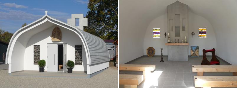 Den Mittelpunkt der Kapelle bildet ein großes Betonkreuz, welches in unserem Betonwerk in Veringenstadt gefertigt wurde. Die Bänke der Kapelle blieben beim Papstbesuch in Freiburg übrig und die Verglasungen wurden aus einer alten Kapelle gerettet, die abgebrochen wurde.