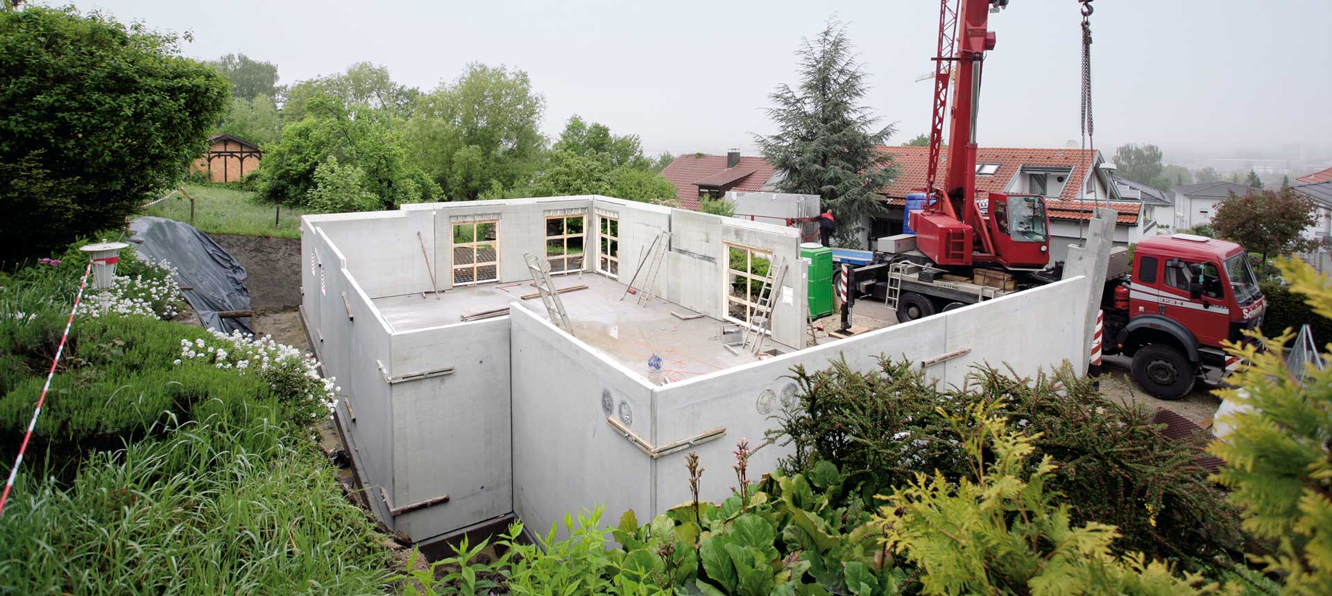 Bei Neubauten wie Fertighäusern versperren ein mit Bitumendichtmasse abgedichteter Fertigkeller aus Beton oder wasserdurchlässigem Beton, Gasdichte Manschetten für die Durchführungen von Strom- und Datenkabeln sowie Gas- und (Ab-)Wasserrohren Radon den Weg ins Haus. Nur bei besonders hohen Belastungen vor Ort ist eine spezielle zugelassene Frischbeton-Verbundfolie notwendig, die die Radonbelastung verhindert. Eine weitere Variante ist eine Drainage mit elektrischem Ventilator.