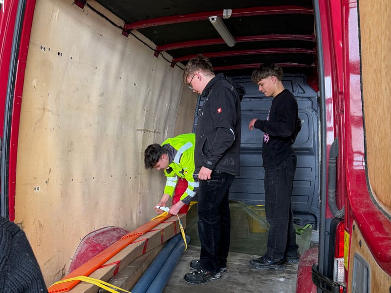 Den Abschluss bildete die Station Ladungssicherung. Dabei mussten unterschiedliche Materialien in einem Transporter fachgerecht verstaut und gesichert werden. Mithilfe von Antirutschmatten, Spanngurten, Netzen und Kantenschonern wurde die Ladung so fixiert, dass sie während der Fahrt weder verrutschen noch kippen konnte. Abschließend wurde gemeinsam überprüft, wie gut die Ladung gesichert war und an welchen Stellen noch Verbesserungsmöglichkeiten bestehen.