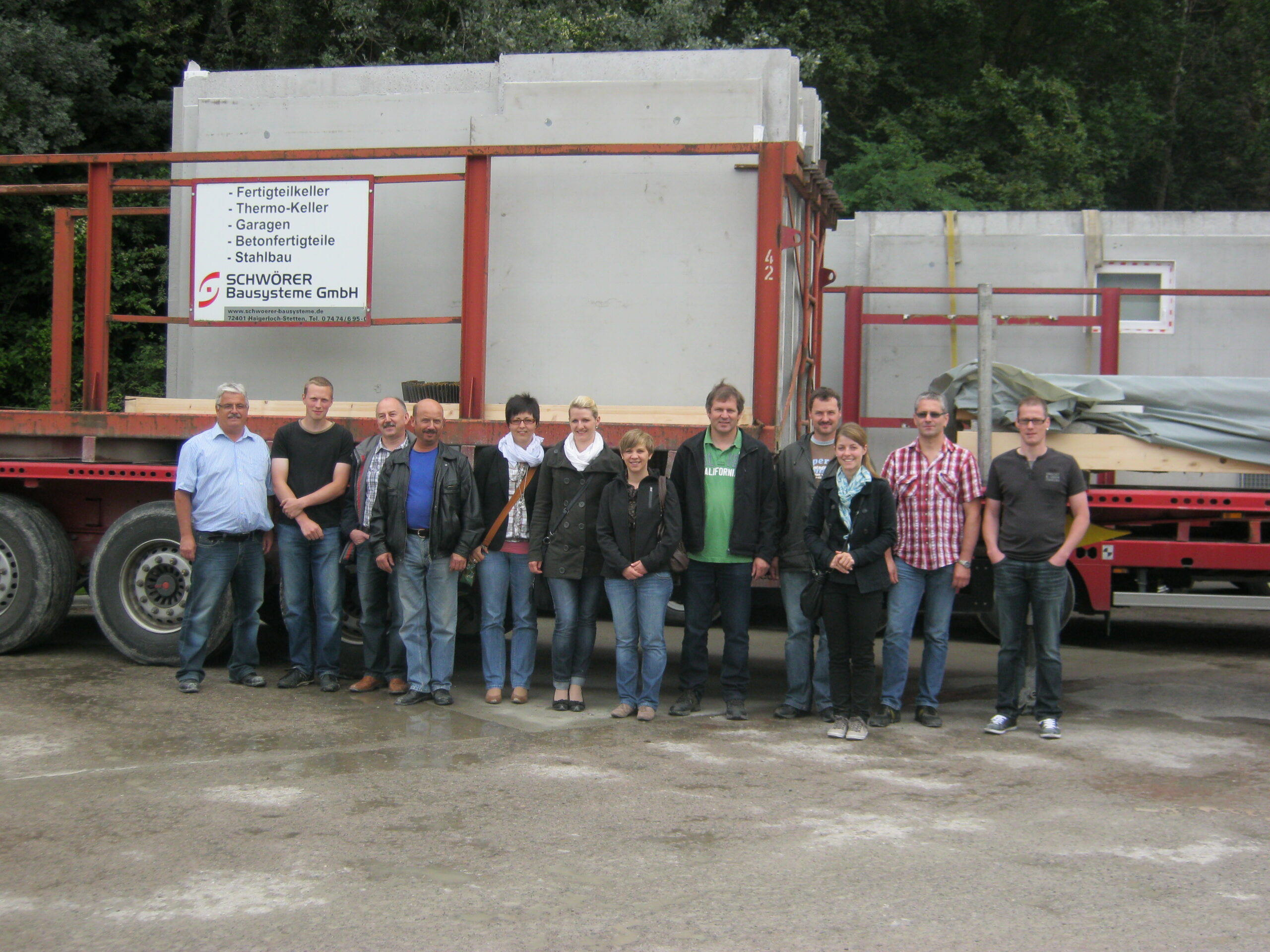 16 Mitarbeitern besichtigt. Werksleiter Karl-Heinz Schneider führte die Gruppe durch die gesamte Produktion. Welches Material kommt aus dem werkseigenen Steinbruch, welche Bedeutung hat Kies bei der Herstellung von Beton wurde ausführlich erklärt. Außedem lernten wir die Herstellung von Betonfertigteilen sowohl für den Industrie- und Gewerbebau als auch für die Schwörer Keller kennen.