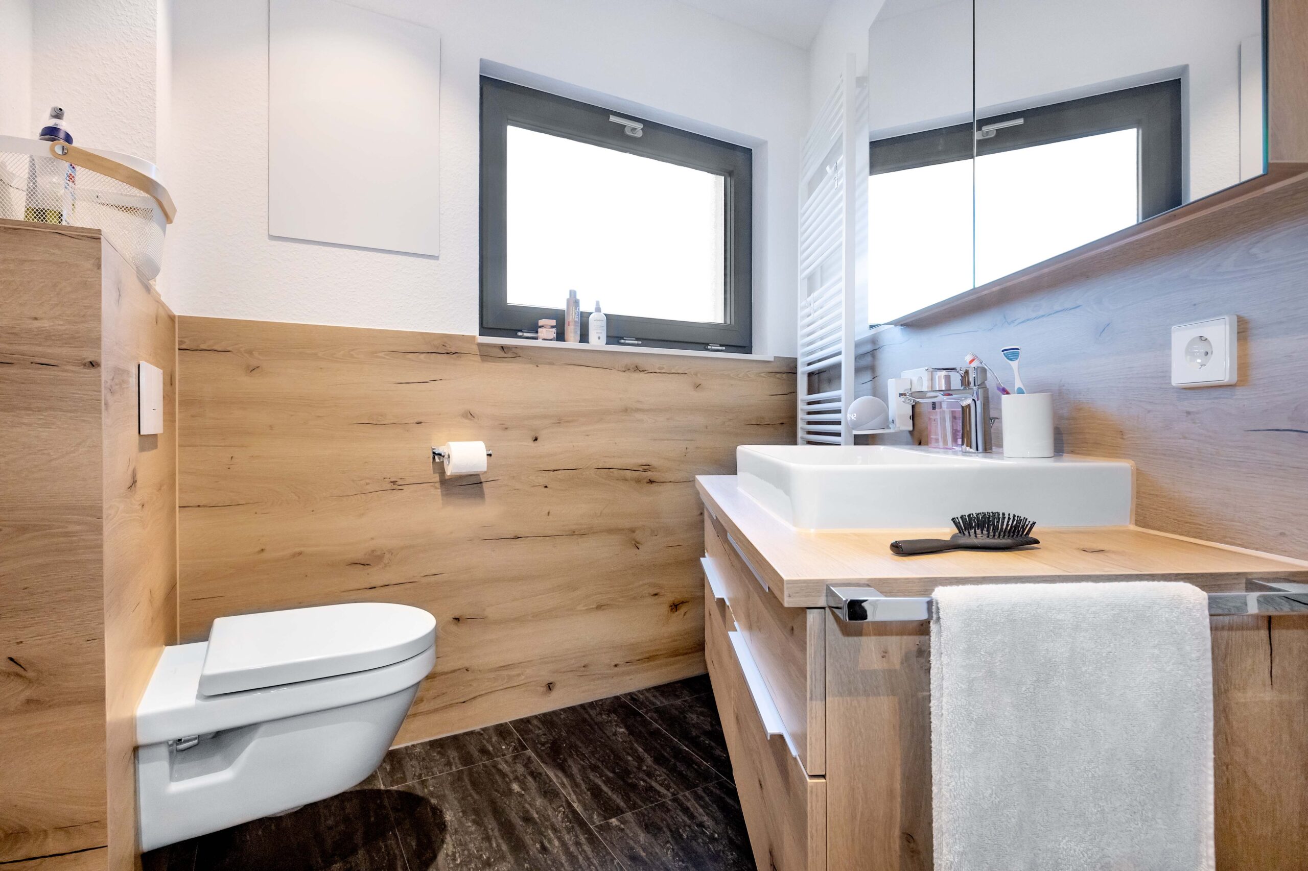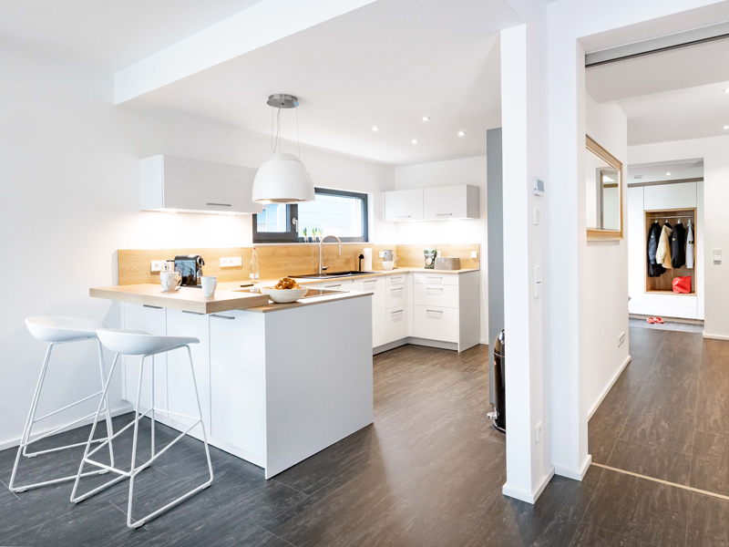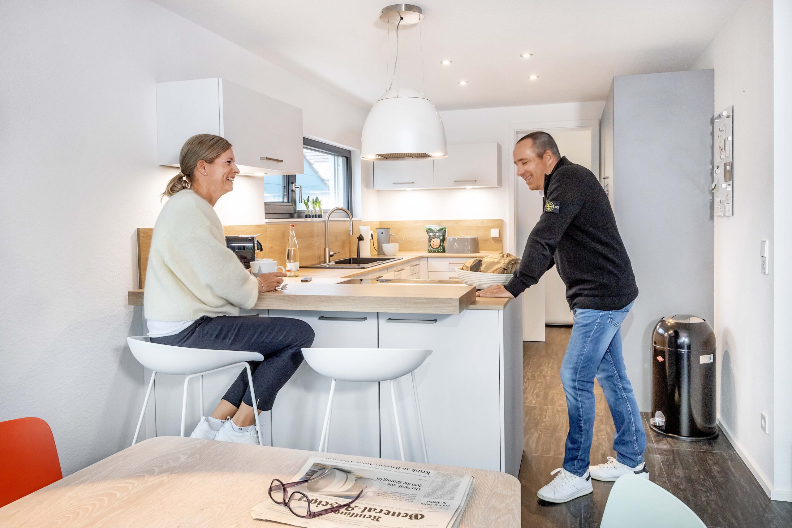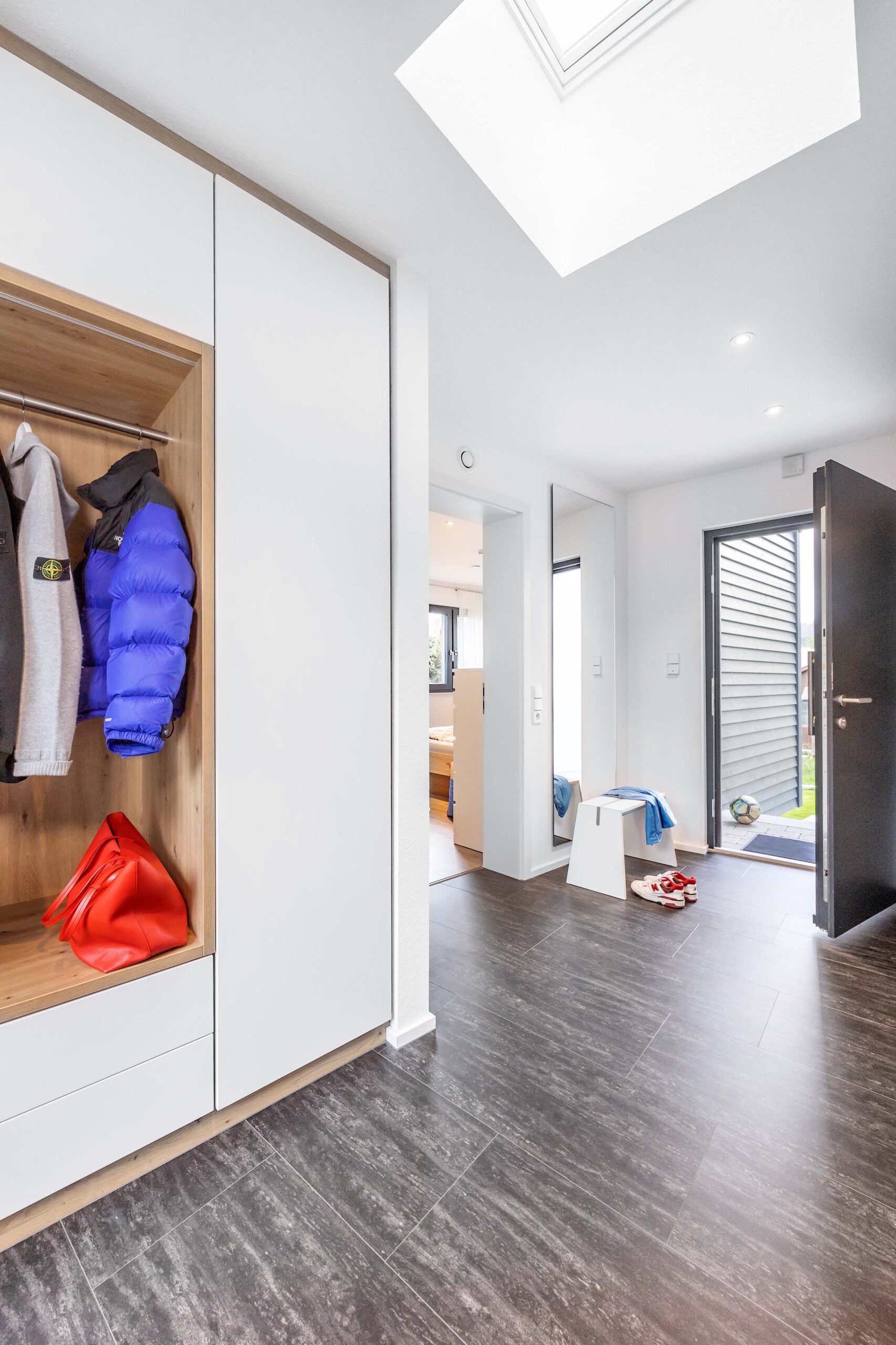 Der Bauherr hatte sich bereits in das Thema Fertighaus eingelesen, er wusste um die Vorteile der Festpreisgarantie, der kurzen Bauzeit und der Abwicklung aus einer Hand. „Wir wollten keinen Stress mit Planung und Bau haben“, erzählt er. „Und in Sachen Energiestandard und Wohngesundheit liegen Fertighäuser eh ganz vorne.“