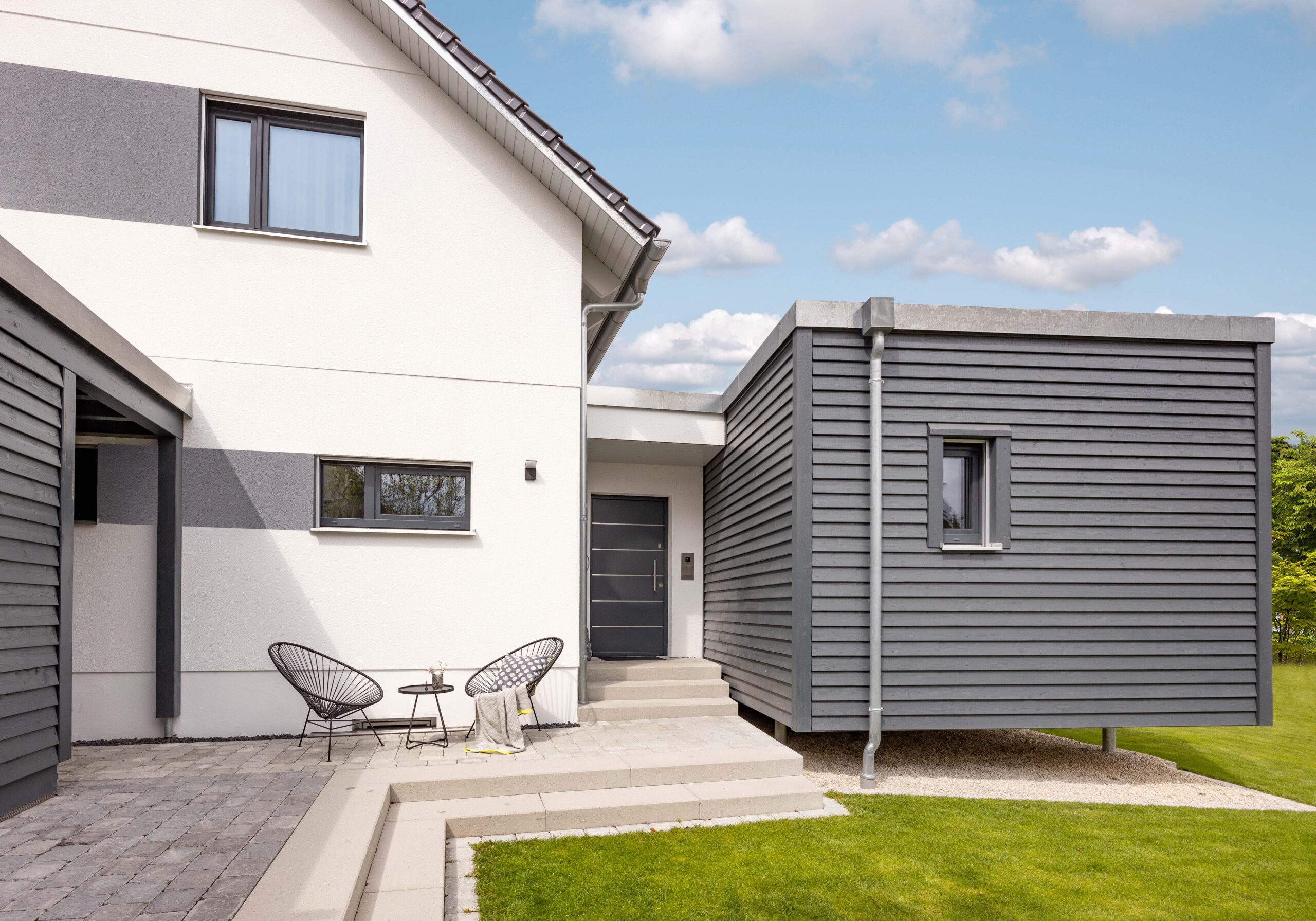 Familie Greiner entschied sich für ein kompaktes Sonneninselhaus mit flexibel nutzbarem Anbau. Dieser besteht aus einem eingeschossigen Gebäudemodul namens FlyingSpace, das SchwörerHaus fix und fertig liefert und ebenso individuell an die Wohnwünsche der Kunden anpasst, wie alle Schwörer-Häuser.