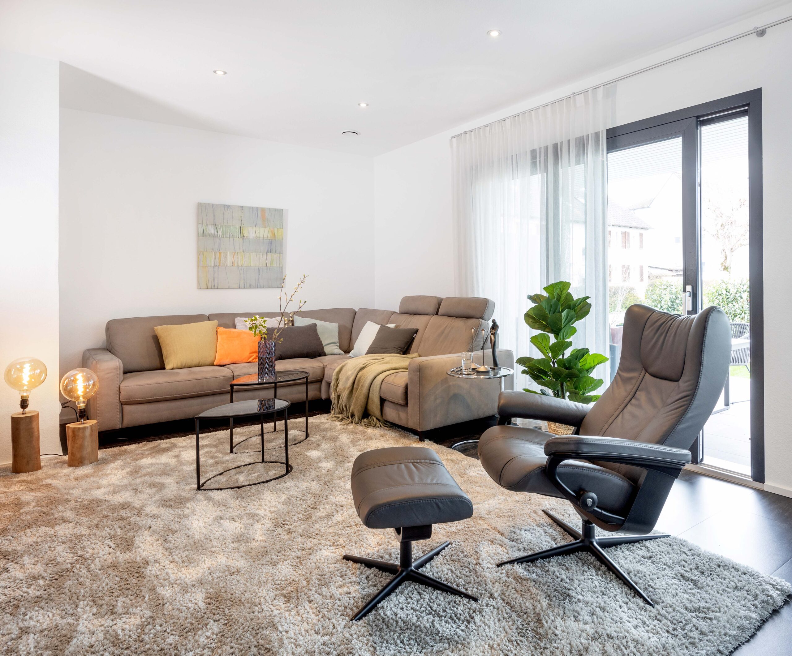 Im Hinblick auf die Gesundheit waren die schadstoffgeprüften Bau- und Innenausbaumaterialien ein wichtiges Kriterium der Familie für die Wahl von SchwörerHaus als Baupartner. Die standardmäßig eingebaute kontrollierte Be- und Entlüftung sorgt für frische