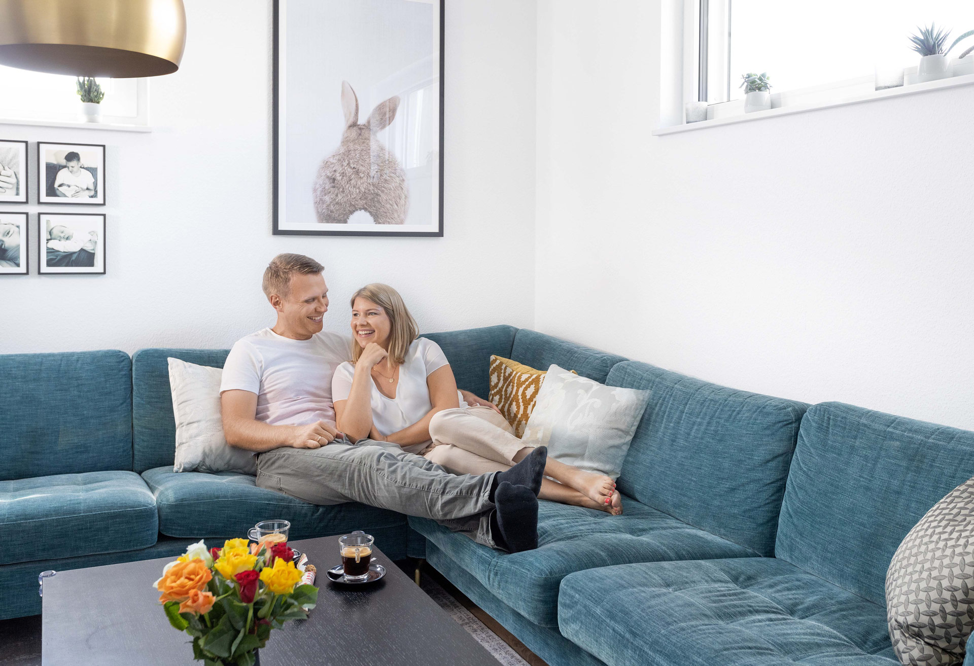 Die Familie hat sich bewusst für SchwörerHaus entschieden, eine Firma, die auf Qualität Wert legt, langfristig denkt und handelt. Ebenso wie es das Paar selbst im Leben handhabt. „Es hat uns überrascht, wie viel Entscheidungsspielraum es bei dem Aktionshaus gab. Wir hatten viel Auswahl bei der Innenausstattung und konnten das Haus nach unseren Vorlieben passgenau auf unser Grundstück planen.“ „Es wäre ein Fehler, sich von dem Wort ‚Fertighaus‘ täuschen zu lassen“, weist Andreas Schneider hin. „Eigentlich müsste es ‚vorgefertigtes Haus‘ heißen, denn man kann das gewählte Modell ziemlich frei gestalten.“